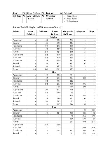 Status of Available Sulphur and Micronutrients (% Area)