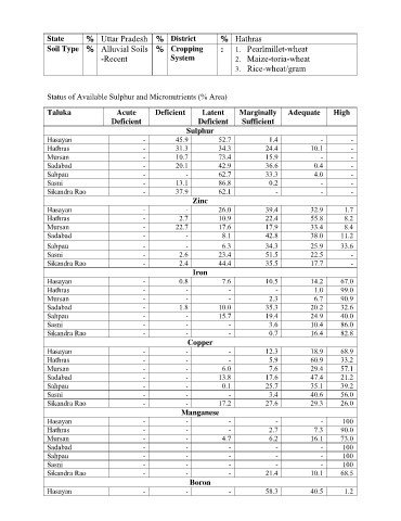 Status of Available Sulphur and Micronutrients (% Area)