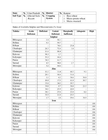 Status of Available Sulphur and Micronutrients (% Area)