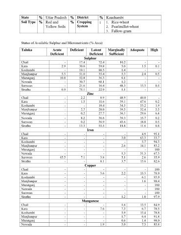 Status of Available Sulphur and Micronutrients (% Area)