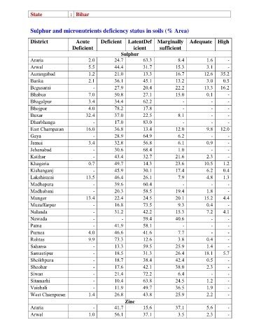 Sulphur and micronutrients deficiency status in soils (% Area)