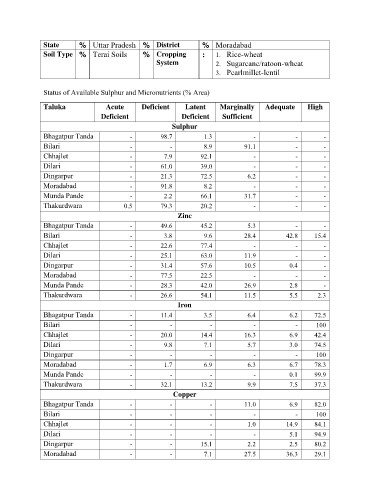 Status of Available Sulphur and Micronutrients (% Area)
