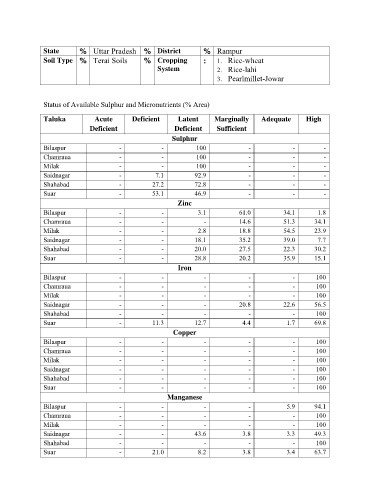 Status of Available Sulphur and Micronutrients (% Area)