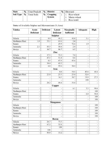 Status of Available Sulphur and Micronutrients (% Area)
