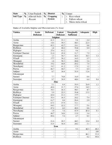 Status of Available Sulphur and Micronutrients (% Area)