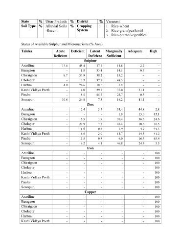 Status of Available Sulphur and Micronutrients (% Area)