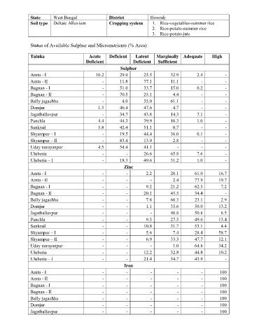 Status of Available Sulphur and Micronutrients (% Area)