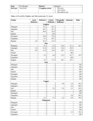 Status of Available Sulphur and Micronutrients (% Area)