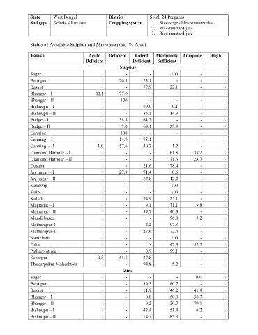 Status of Available Sulphur and Micronutrients (% Area)
