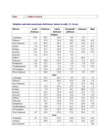Sulphur and micronutrients deficiency status in soils (% Area)