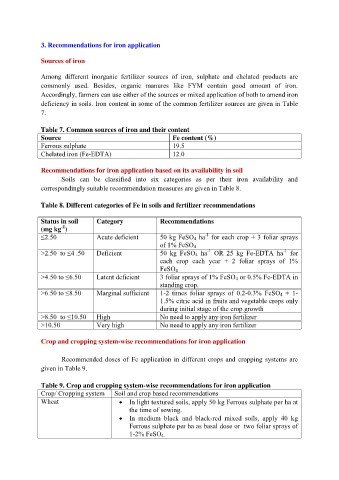 Table 9. Crop and cropping system-wise recommendations for iron application