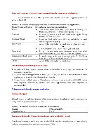 Table 12. Crop and cropping system-wise recommendations for Mn application