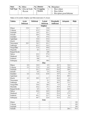 Status of Available Sulphur and Micronutrients (% Area)