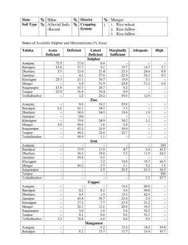 Status of Available Sulphur and Micronutrients (% Area)