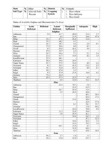 Status of Available Sulphur and Micronutrients (% Area)