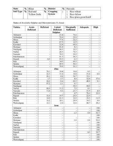 Status of Available Sulphur and Micronutrients (% Area)