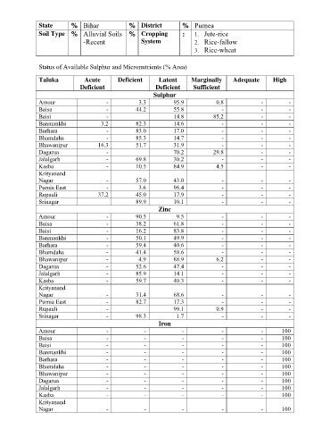 Status of Available Sulphur and Micronutrients (% Area)