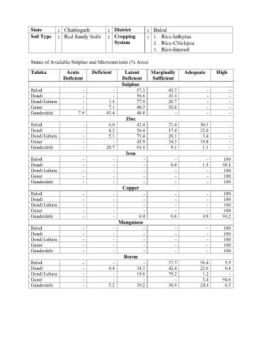 Status of Available Sulphur and Micronutrients (% Area)