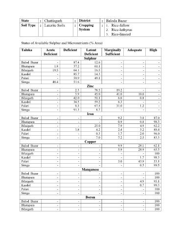 Status of Available Sulphur and Micronutrients (% Area)