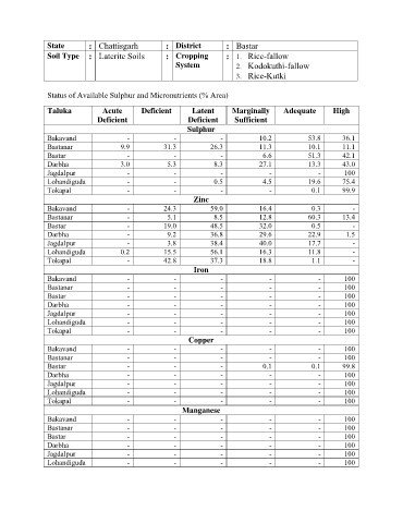 Status of Available Sulphur and Micronutrients (% Area)