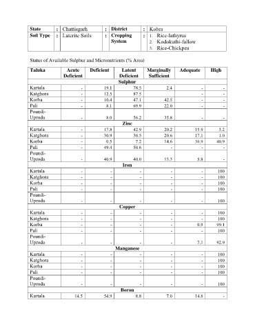 Status of Available Sulphur and Micronutrients (% Area)