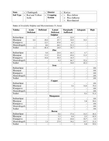 Status of Available Sulphur and Micronutrients (% Area)
