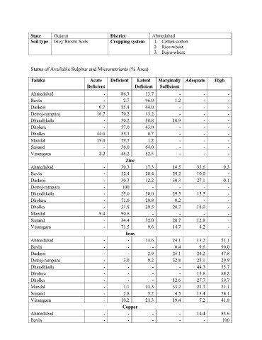 Status of Available Sulphur and Micronutrients (% Area)