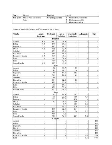 Status of Available Sulphur and Micronutrients( % Area)