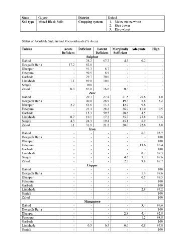 Status of Available Sulphurand Micronutrients (% Area)