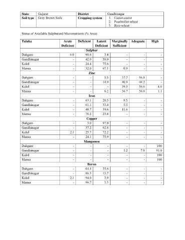 Status of Available Sulphurand Micronutrients (% Area)