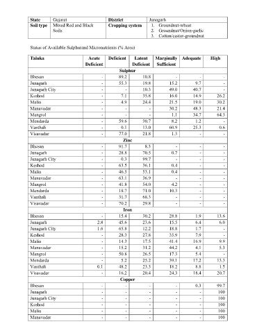 Status of Available Sulphurand Micronutrients (% Area)