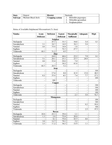 Status of Available Sulphurand Micronutrient (% Area)