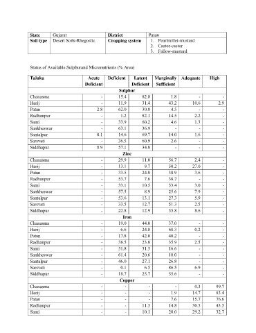 Status of Available Sulphurand Micronutrients (% Area)