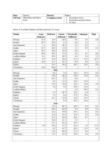 Status of Available Sulphur and Micronutrients (% Area)