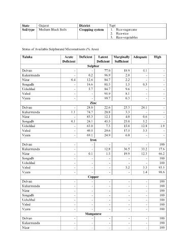 Status of Available Sulphurand Micronutrients (% Area)