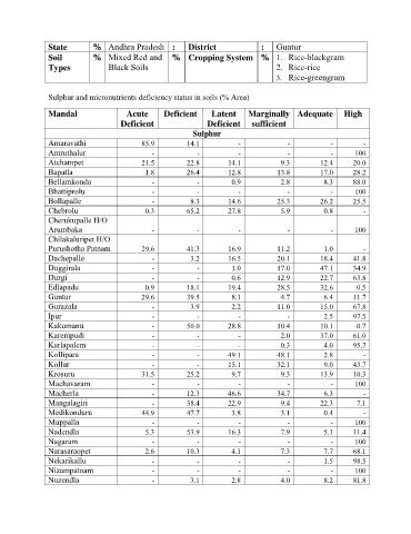 Sulphur and micronutrients deficiency status in soils (% Area)
