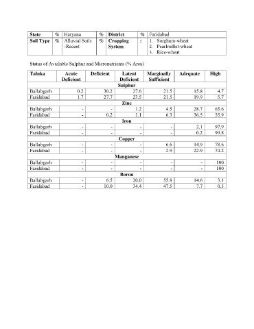 Status of Available Sulphur and Micronutrients (% Area)