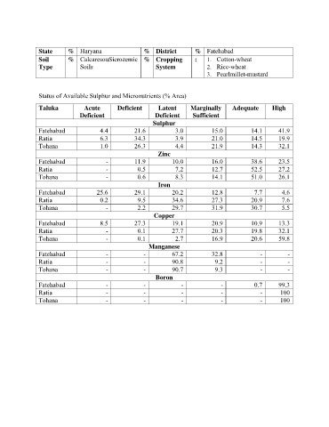Status of Available Sulphur and Micronutrients (% Area)