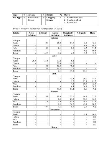 Status of Available Sulphur and Micronutrients (% Area)