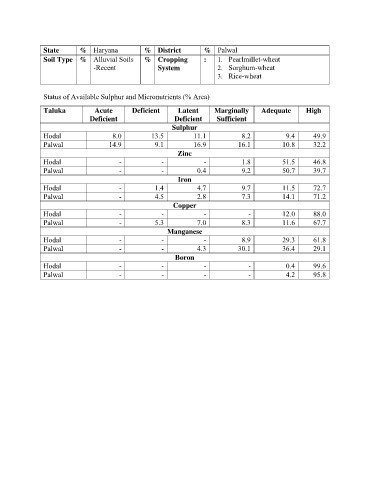 Soil Type % Alluvial Soils % Cropping : 1. Pearlmillet-wheat