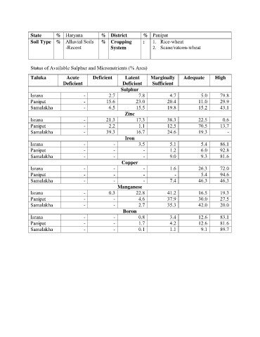 Soil Type % Alluvial Soils % Cropping : 1. Rice-wheat