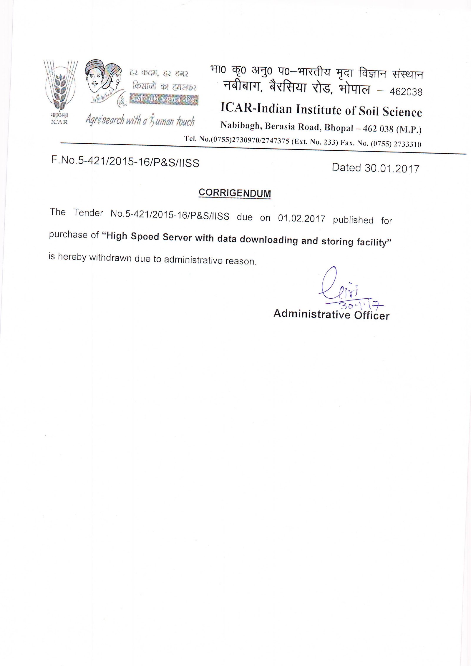 Corrigendum for E-Tender Notice for Annual